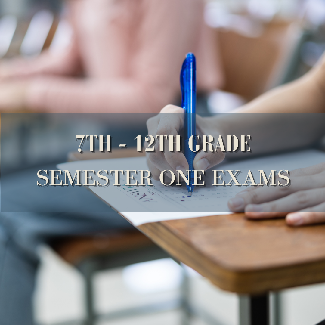 All core academic classes give semester exams (Bible, English, Math, Science, Social Studies and Spanish).
