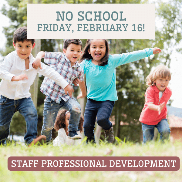 There will be no school for students on Friday, February 16th due to Staff Professional Development days!
