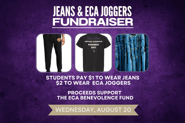 On select Jeans & Joggers Fundraiser Day, students can pay $1 to wear jeans or $2 to wear their ECA Joggers and wear this year's ECA Spirit Shirt.