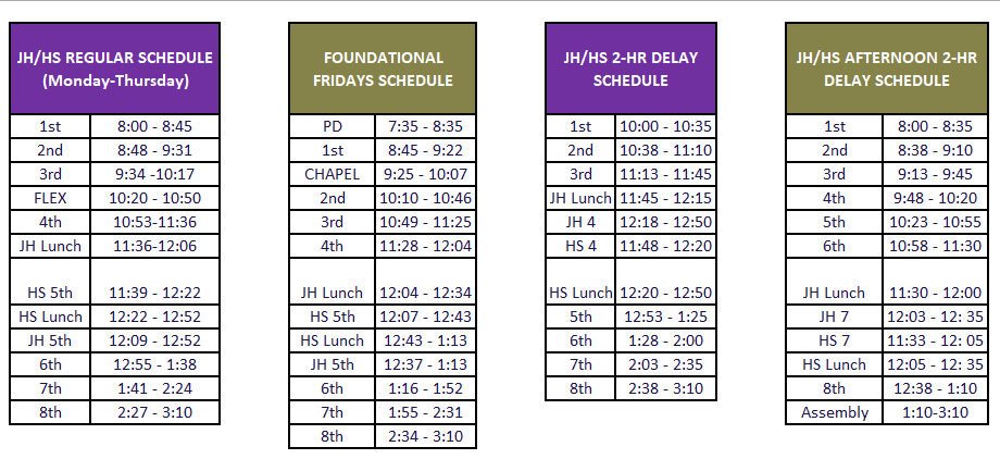 Below are the typical schedules for Chapel and Assembly.
